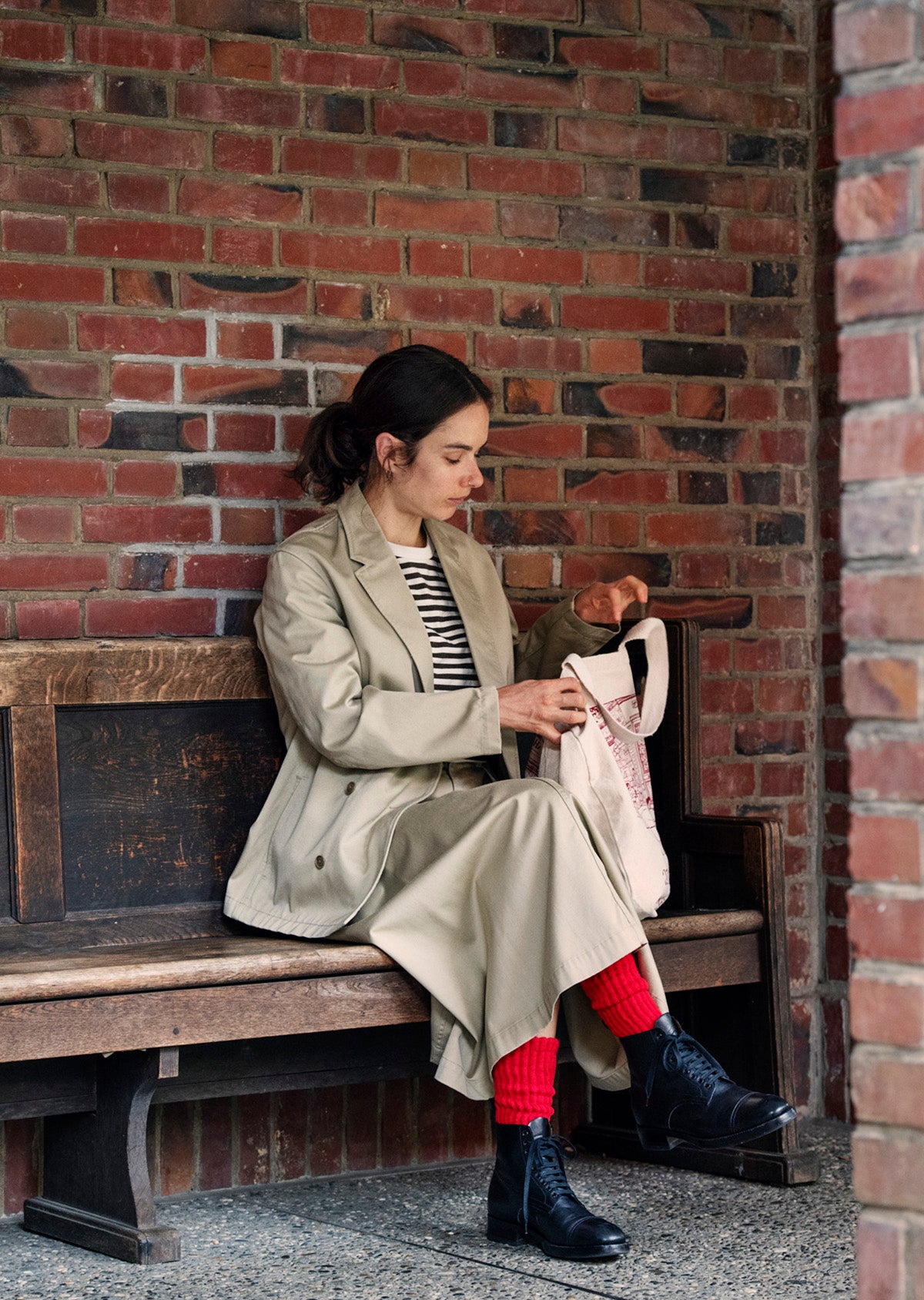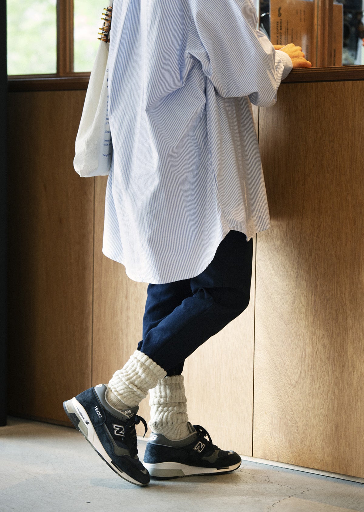足に柔らかくフィットする伸縮性のある生地を編み立て、締め付け感を感じにくいよう履き口のリブを仕上げた“LOOSE PILE CREW SOCKS”。少し長めに設定したリブは、そのまま履くのはもちろん、寒い時には伸ばしてハイソックスのように履くことも可能です。ふかふかの履き心地を実現した足底のパイル編みも、特徴的なローゲージソックス。全13色のカラーバリエーションでの展開です。