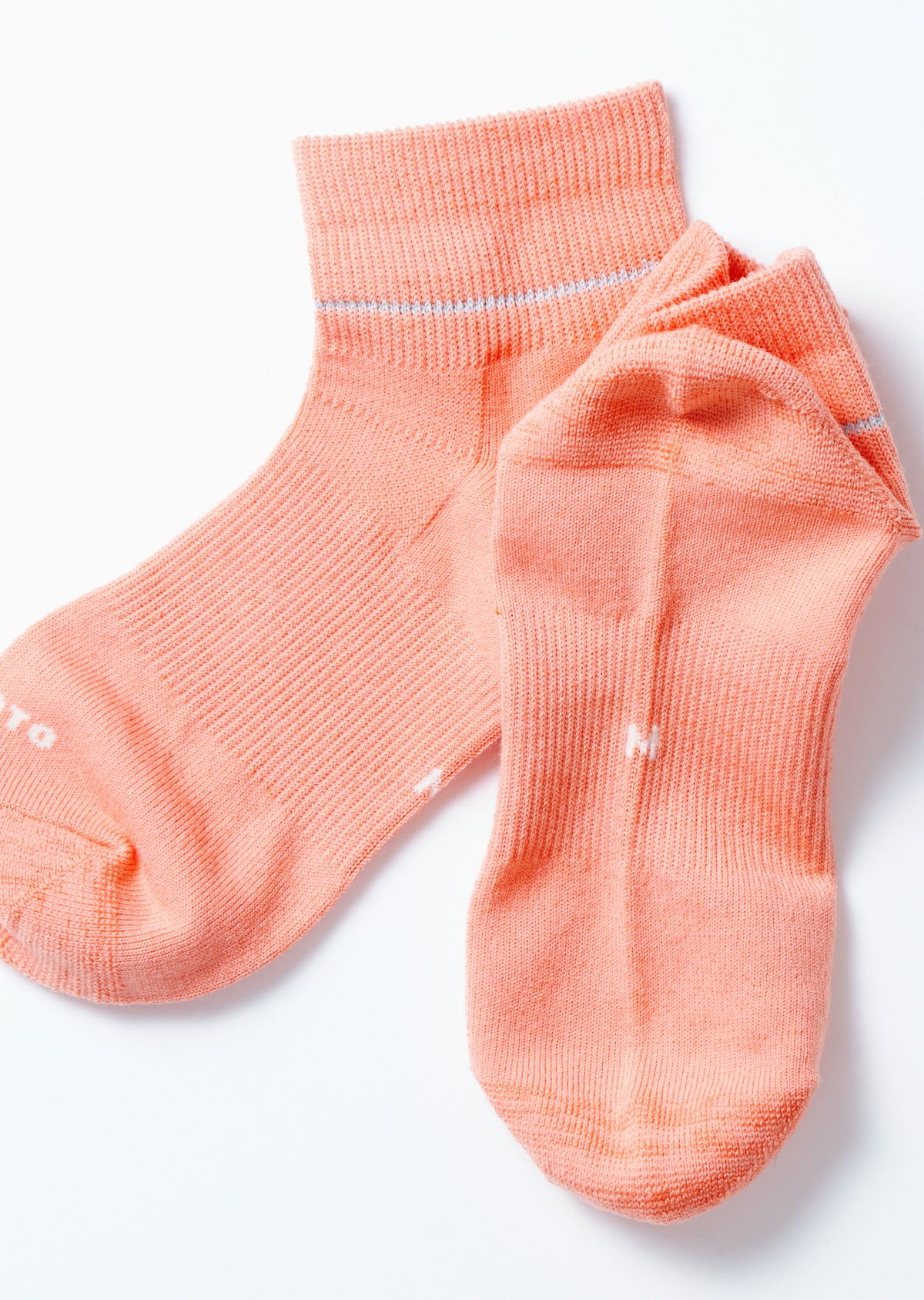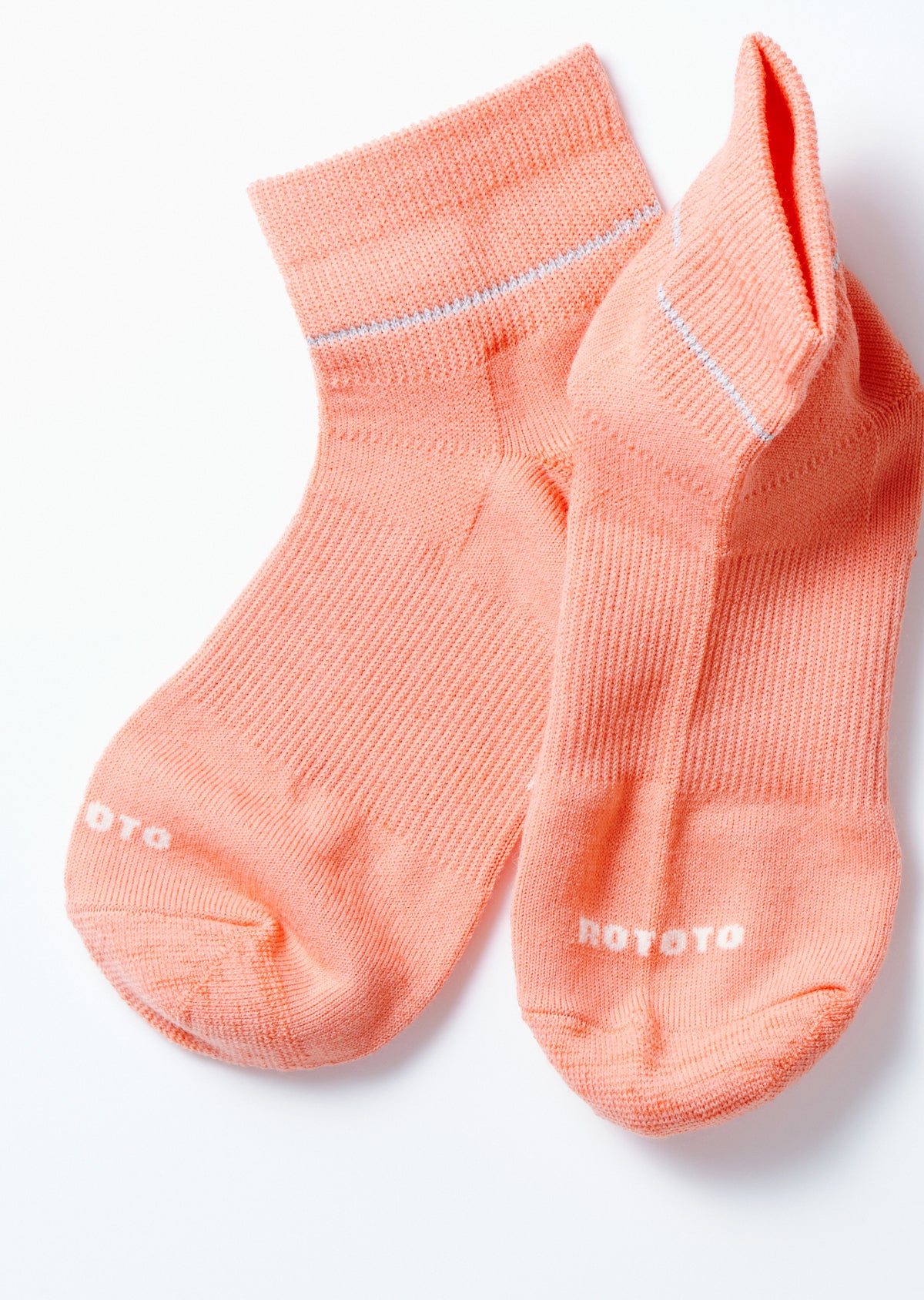 These socks are truly an all-rounder as it can be worn not just for daily use, but also for casual workouts such as jogging and gym training as well as for outdoor activities including camping and light hiking. Machine-washable, anti-shrinkage merino wool is used as the fabric. With reflective yarn knitted in the thin ankle stripe, it improves safety during night-time activities. The nylon-blend fabric offers extra durability, and the sole is not brushed for year-round comfort.