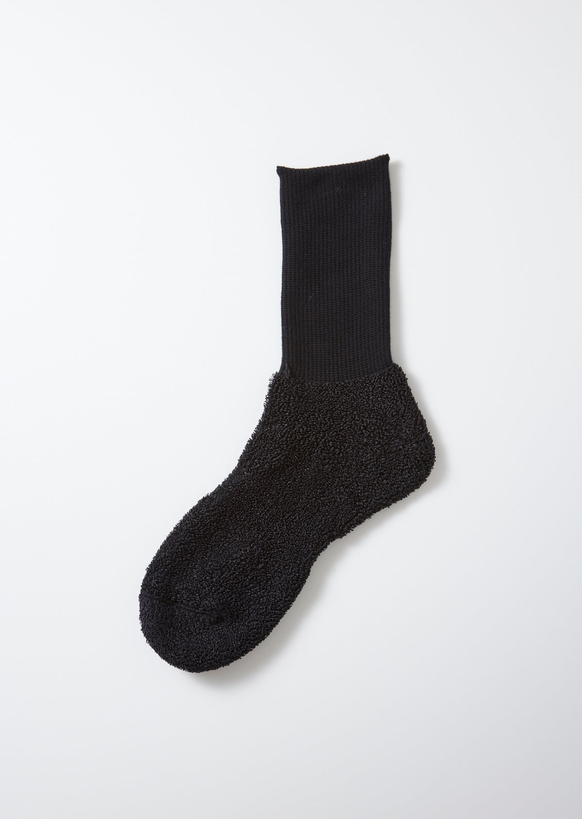 These WASHI PILE CREW SOCKS are made of crisp Washi (Japanese paper) yarn, featuring refreshing pile lining. Made out of natural Manila hemp fiber that is also used to make paper currency, the Washi yarn has excellent water-absorbent and moisture-wicking properties. Although it is usually difficult to pile knit Washi yarn, a special machine and artisanal craftsmanship have made it possible.