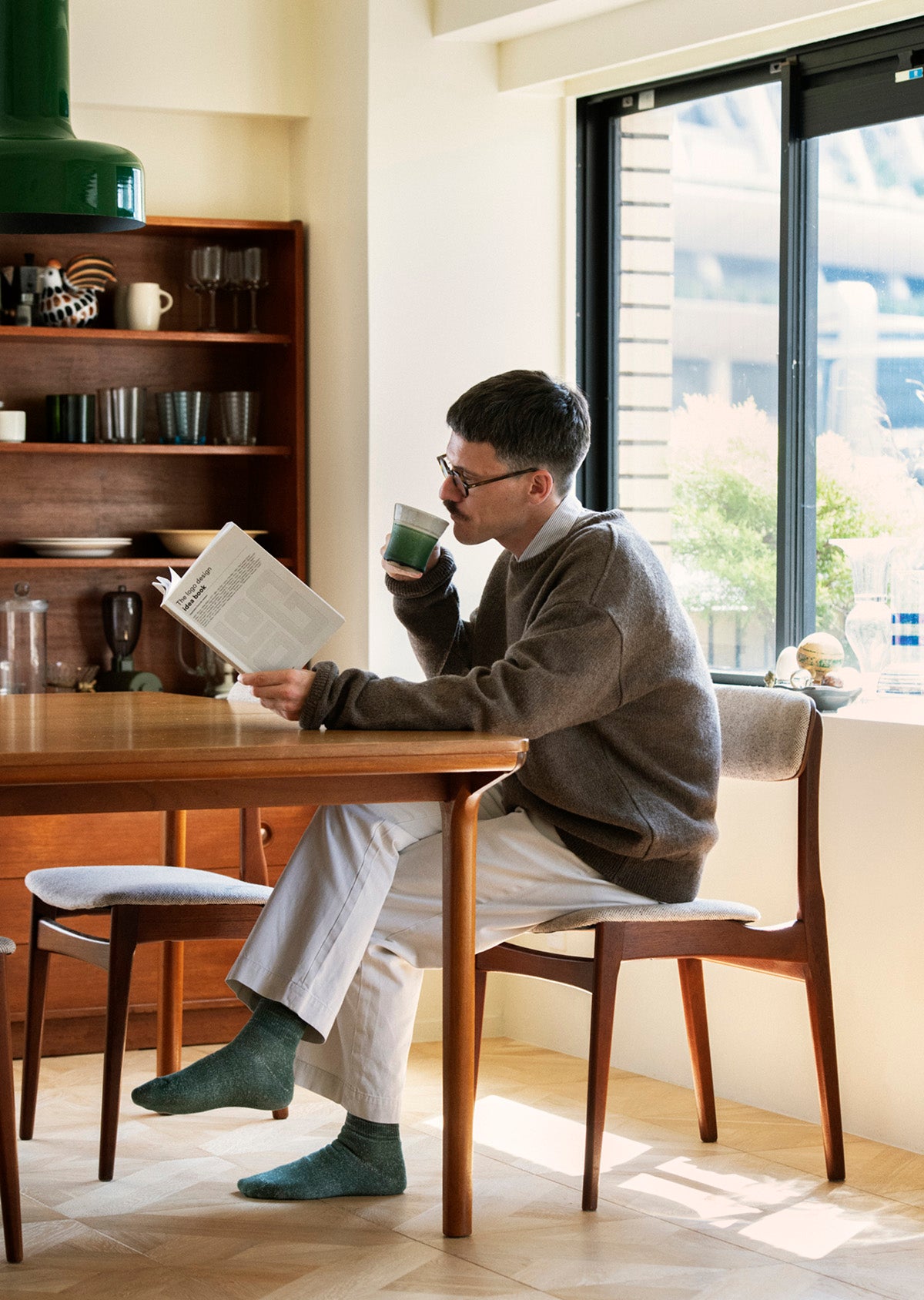 ハリのある和紙の糸を使い、内側をパイル編みすることで、シャリッとした清涼感のある履き心地に仕上げた“WASHI PILE CREW SOCKS”。紙幣にも使われるマニラ麻を主原料とする和紙は、軽くて頑丈なだけでなく、吸水・放湿性にも優れた天然の機能素材。通常パイル編みすることが困難な和紙の糸を、特殊な編み機と卓越した職人の技術によって特別な一足に仕上げました。