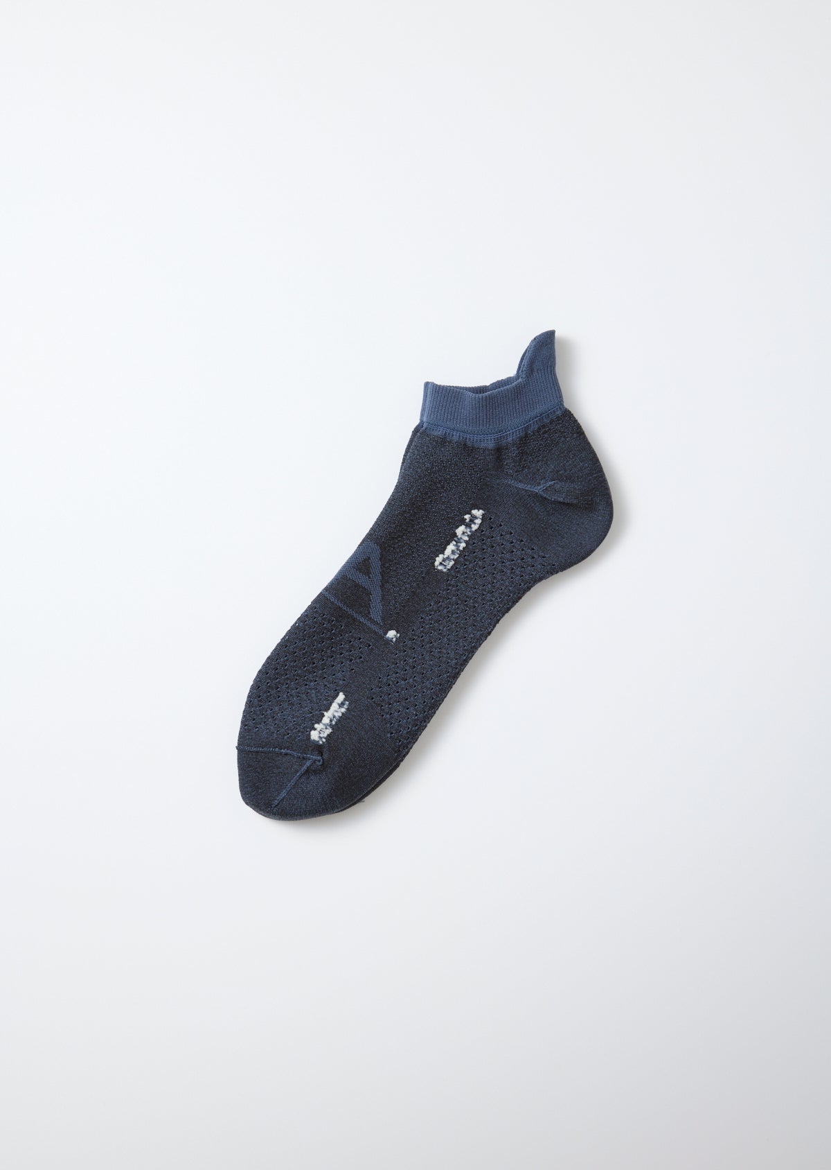 New breathable TECH MESH socks are added to the ALLROUNDER line. The mesh fabric knitted on a unique knitting machine helps reduce the sweaty feeling around the foot, being ideal for outdoor activities and travel in summer with quick-drying and light-weight properties. Knitted mainly with soft and flexible SOLOTEX polyester yarn, this item also reduces the smell of feet by mixing deodorizing yarn that makes the sweaty smell odorless. This NO SHOW design goes neatly with sandals like KEEN’s UNEEK and HOPARA from HOKA ONE ONE.