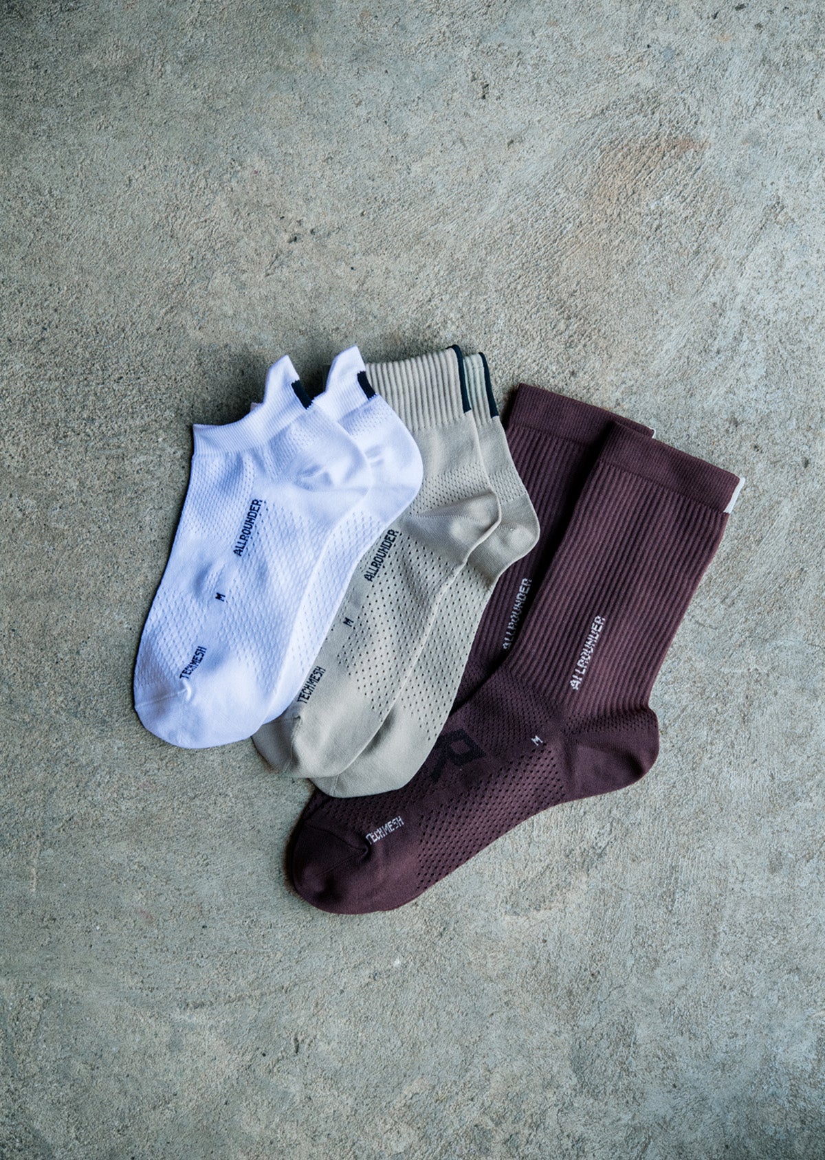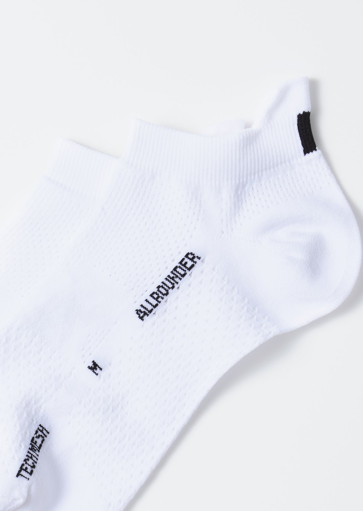New breathable TECH MESH socks are added to the ALLROUNDER line. The mesh fabric knitted on a unique knitting machine helps reduce the sweaty feeling around the foot, being ideal for outdoor activities and travel in summer with quick-drying and light-weight properties. Knitted mainly with soft and flexible SOLOTEX polyester yarn, this item also reduces the smell of feet by mixing deodorizing yarn that makes the sweaty smell odorless. This NO SHOW design goes neatly with sandals like KEEN’s UNEEK and HOPARA from HOKA ONE ONE.