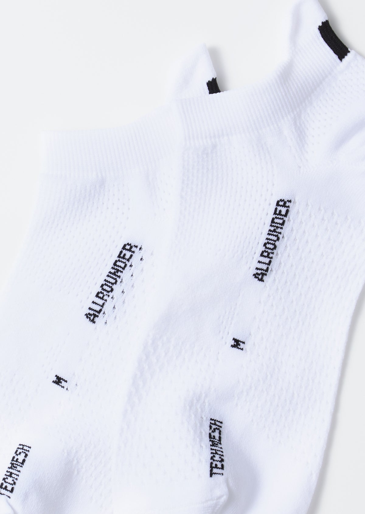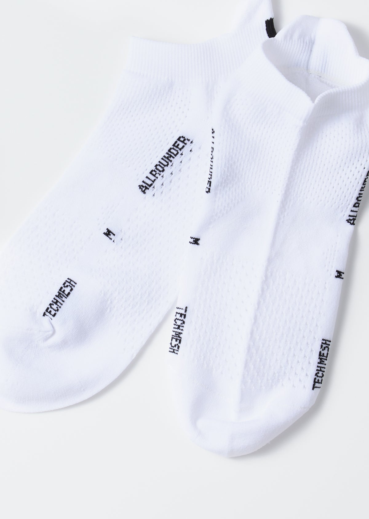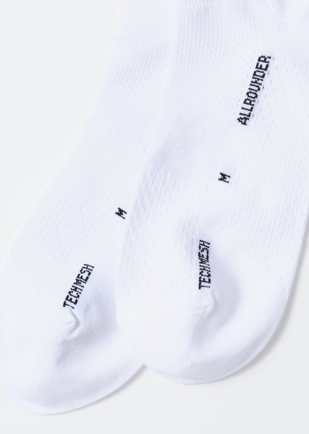 "ALLROUNDER" の通気性に優れた新シリーズ「TECH-MESH」。特殊な編み機によるメッシュ編みが、足のムレを軽減します。水に濡れても乾きが早く、軽量なのでサマーシーズンのアウトドア・アクティビティや旅行にもぴったり。ベースには、ソフトタッチでしなやかなポリエステル糸「SOLOTEX」を使用しています。また、汗から出るニオイを無臭成分化させる消臭機能糸を一緒に編み立てることで、気になる足のニオイも軽減。"NO SHOW"タイプはKEEN・UNEEK やHOKA ONE ONE・HOPARAなどと相性の良い丈感です。
