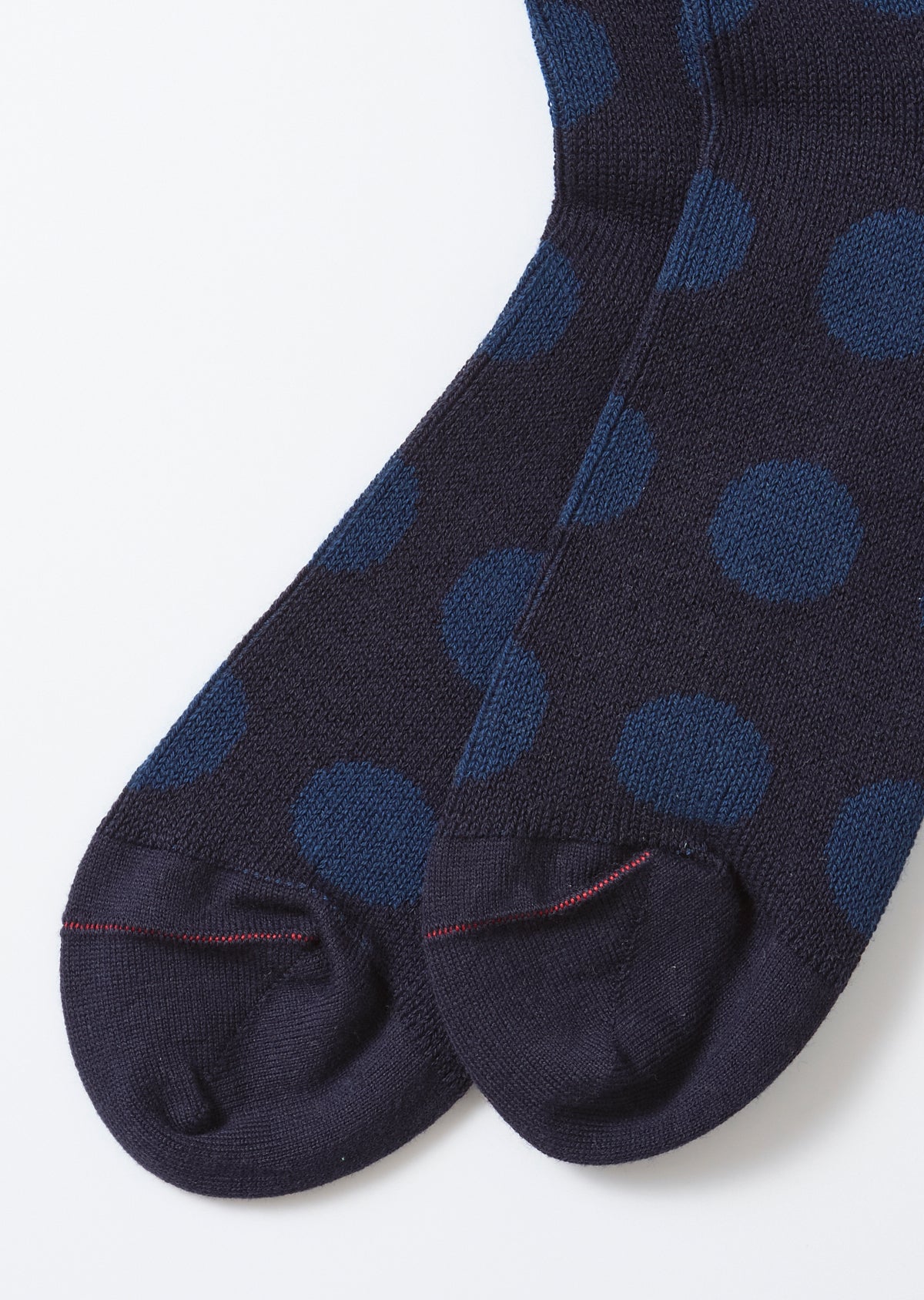 Inspired by the iconic “porthole” windows found in the architecture of Jean Prouvé—a pioneer who shaped 20th-century design—these cotton socks feature a bold yet refined dot pattern. Expertly knitted at a Japanese factory specializing in dress and business socks, they're finished using a seamless linking method at the toe, minimizing bulk and maximizing comfort against the skin.