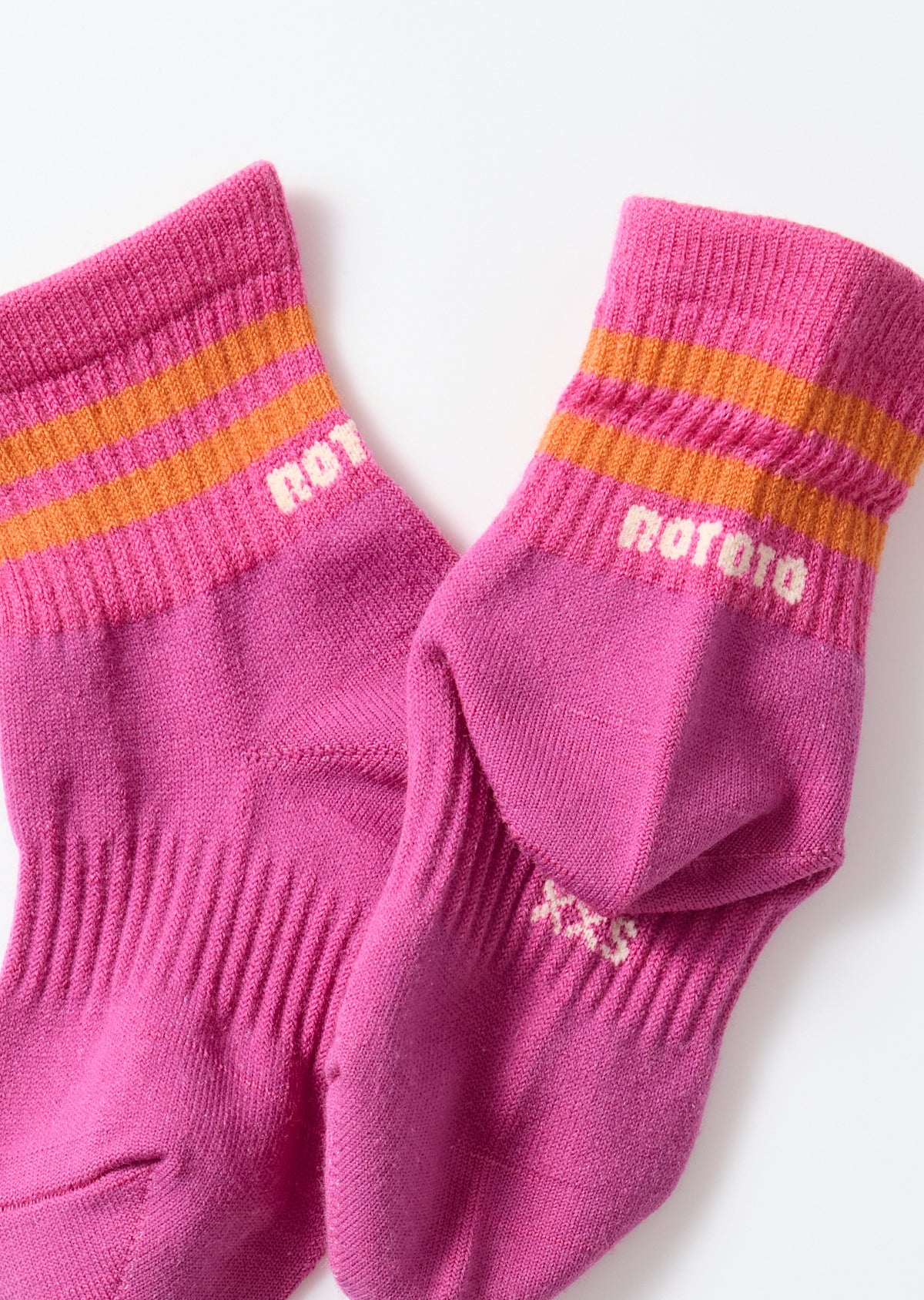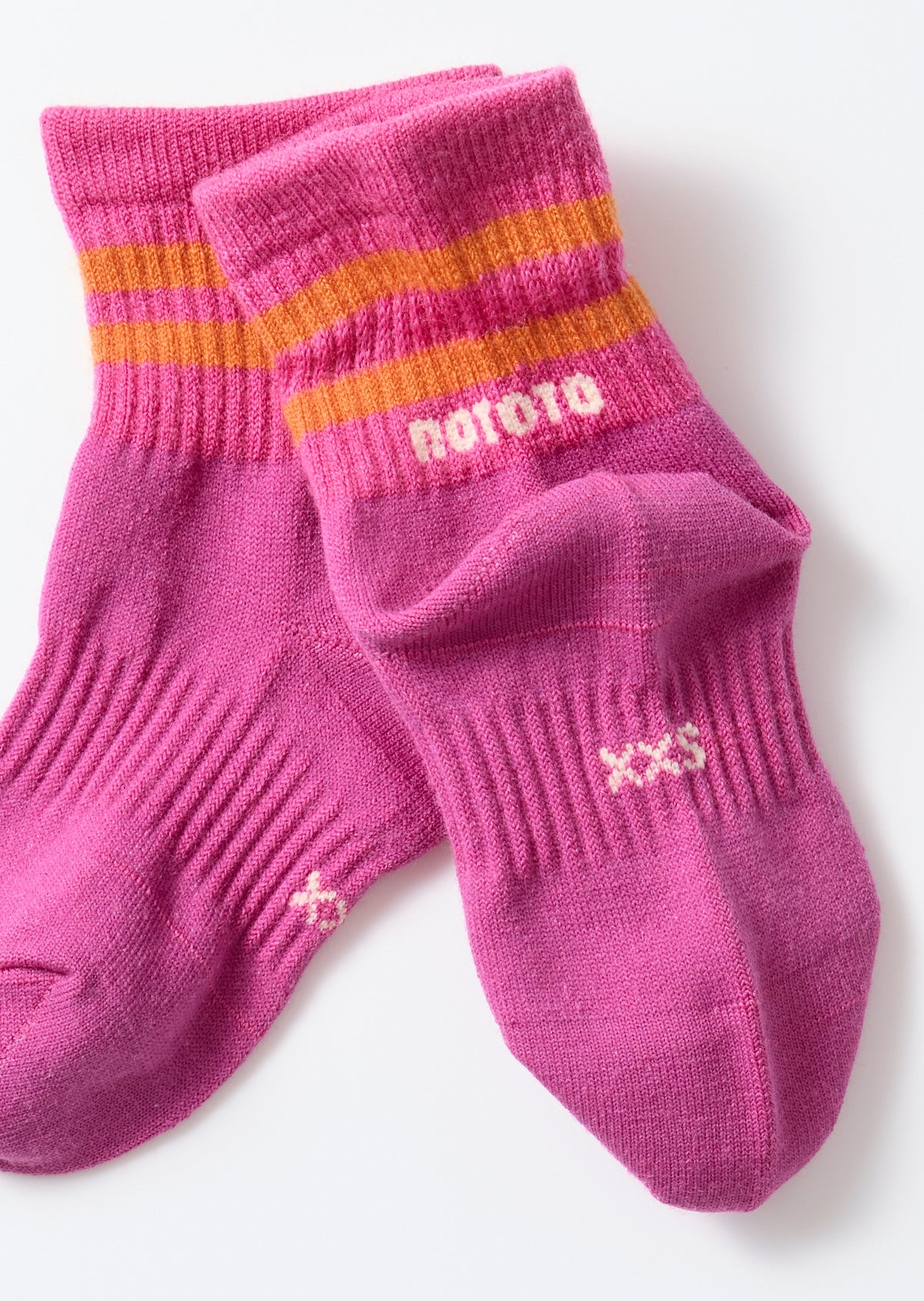 These athletic socks for kids are made with merino wool, known for its excellent heat retention and moisture-regulating properties compared to cotton. They help keep little feet warm and dry—even on chilly winter days full of running around.To improve durability, we've blended nylon yarn into the knit to offset wool’s natural weakness to friction. Perfect for outdoor adventures like hiking and camping.Another plus: they're machine-washable at home.