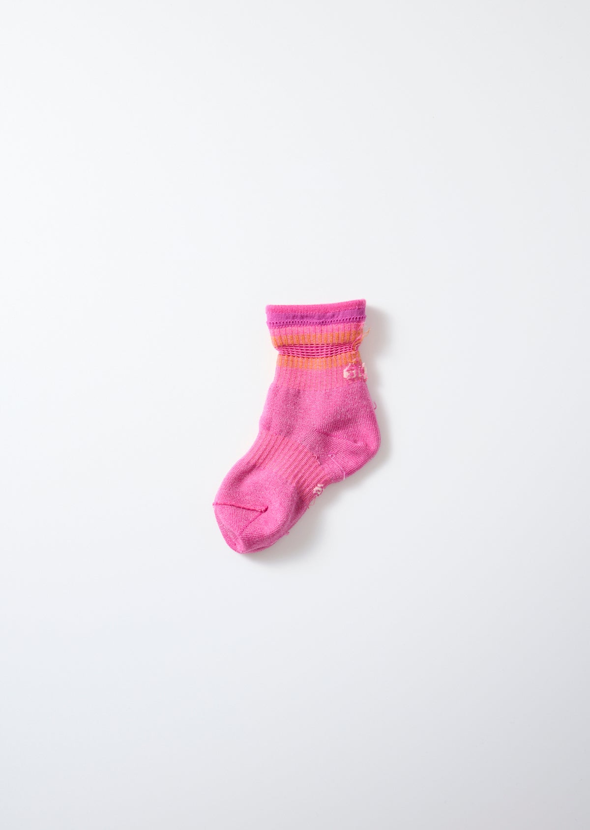 メリノウールを使用した、キッズサイズのアスレチックソックスです。ウールはコットンに比べて保温性と吸放湿性に優れており、冬の寒い日でも元気に走り回る子どもたちの足元を快適に保ちます。また、摩擦に弱いというウールの弱点は、ナイロン糸を一緒に編み込むことでカバー。耐久性を高めることで、登山やハイキングなどのアウトドアシーンにもオススメです。ご家庭の洗濯機で洗えるのも嬉しいポイントです。