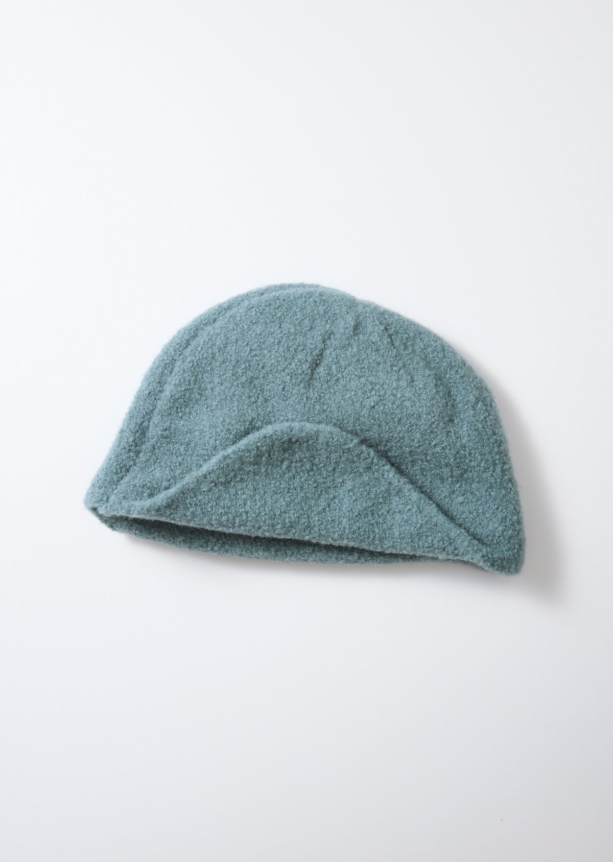 A beanie with ear flaps made from baby alpaca wool, known for its exceptionally soft and smooth texture.The boucle yarn, specially processed into looped fibers, traps plenty of air, making the hat both lightweight and highly insulating—perfect for colder seasons.