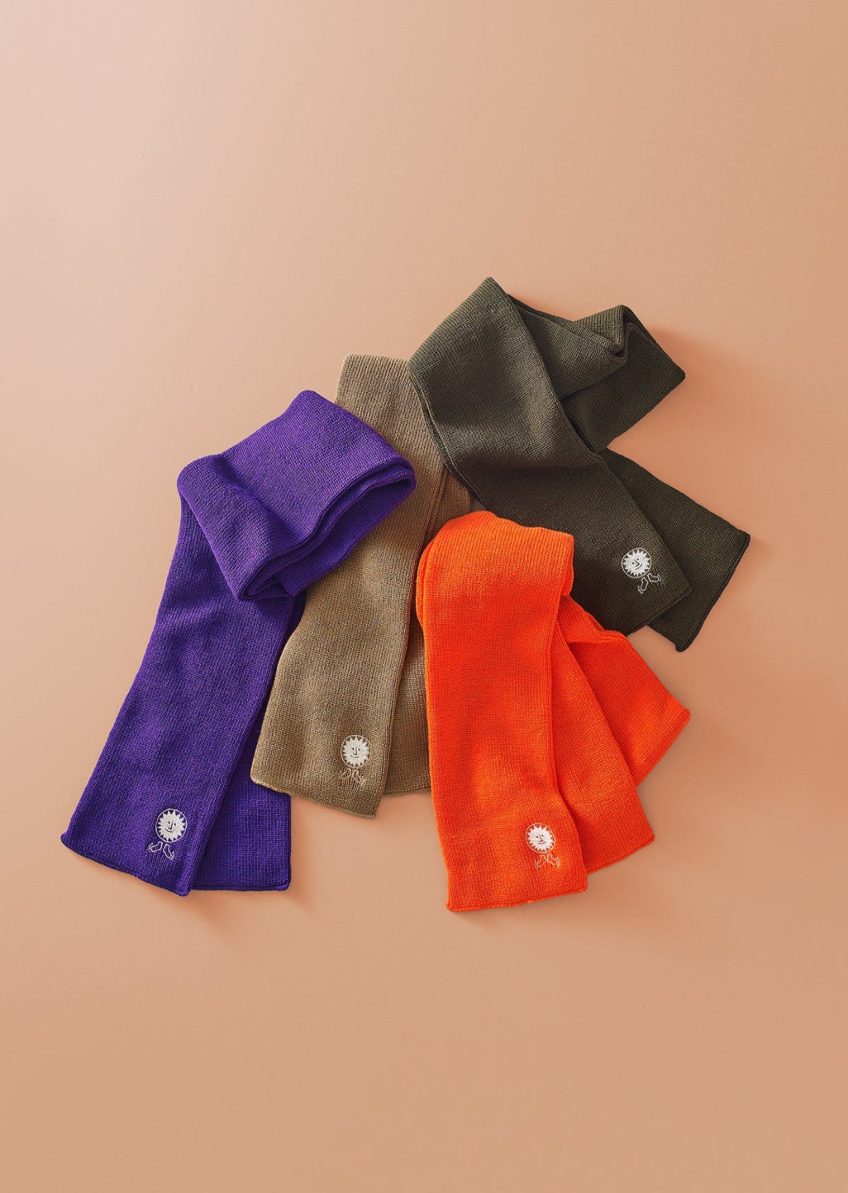 ミリタリーのチューブマフラーから着想を得て、靴下編み機で仕上げた“ソックストール”。素材には保温性の高いアクリル×ウール混紡糸を使用し、コラボレーションの証であるロゴの刺繍をアクセントに。オリジナルポーチが付属します。